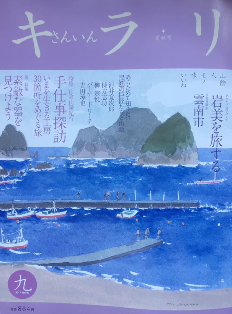 | 2017年9月 | 『さんいん キラリ』夏秋号No.40 に取材して頂きました。 プラハでの舞書のこと、アトリエをもって9年たった今の暮らしやおもいや、日本で一番すみたい田舎にも選ばれた、アトリエのある岩美町の魅力がさくさん紹介されています。 ぜひご覧になってください。 お問合せ グリーンフィールズ 0859277074 info@s-kirari.net |