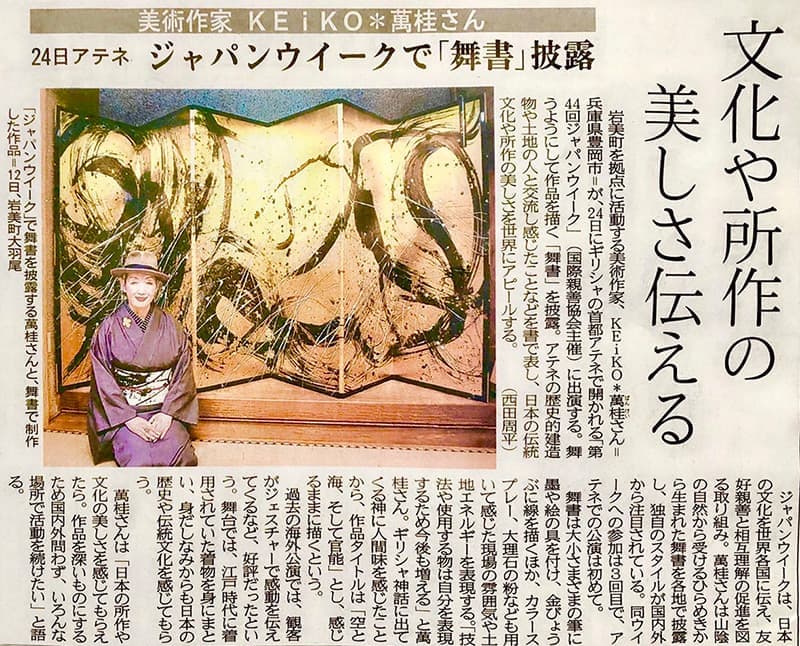 | 2012年9月17日 | 日本海ケーブルネットワーク NCNピットステーション 「大判手すき和紙に舞書パフォーマンス」 9月17日〜18日 <PM7:00〜 放送> あおや和紙工房で、2012年9月16日に行った企画展でのメインイベント舞書パフォーマンス |
