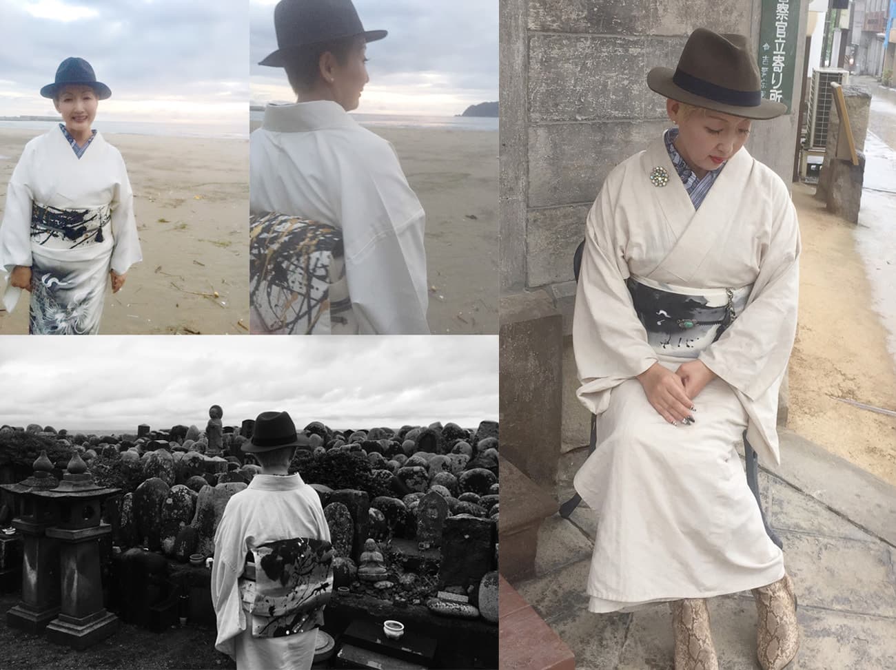着物がだいすきでいつかは自分らしい着物をつくりたい、身に纏いたいという気持ちをやっと形にすることができました。初めて描いた着物には植村家の家紋「龍剣一文字」の家紋をつけました。