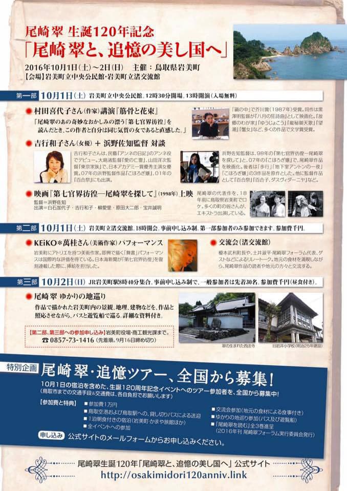 この記念すべき年に、翠が生まれ、17歳から20歳の3年間、代用教員として仕事しながら初期作品を書いた岩美町で、