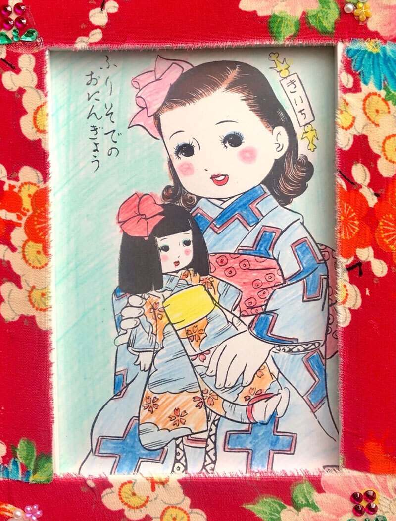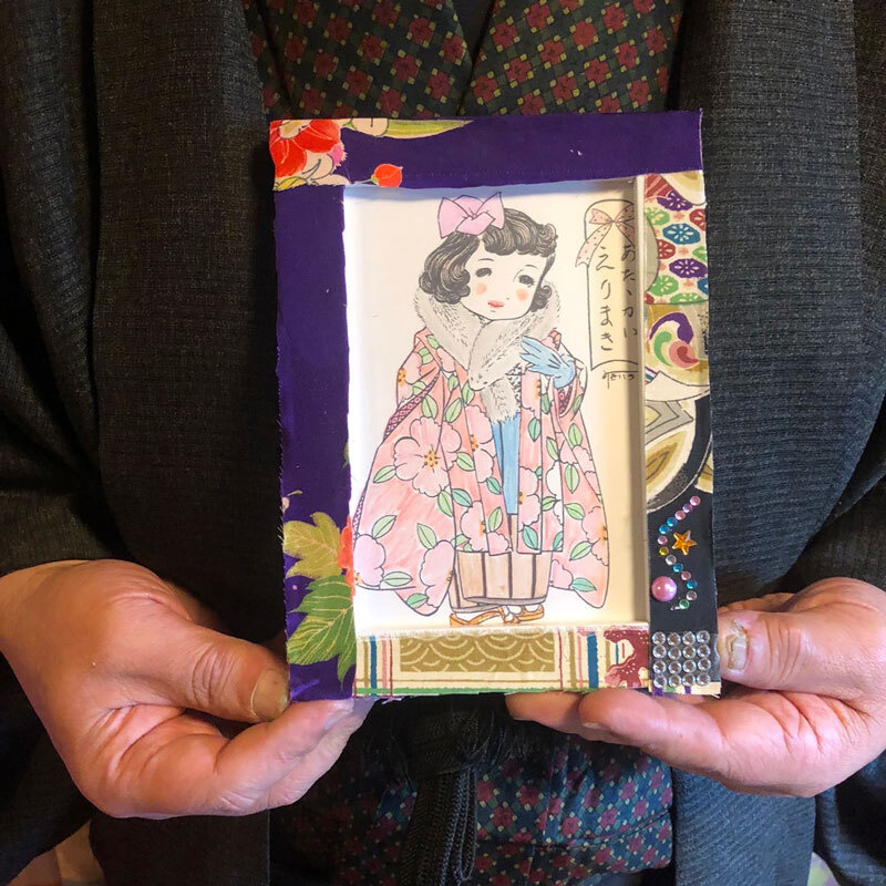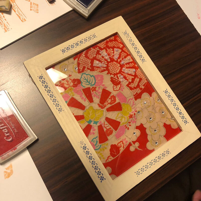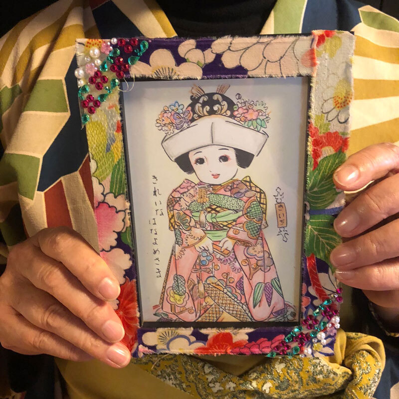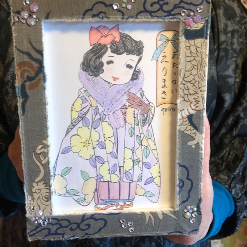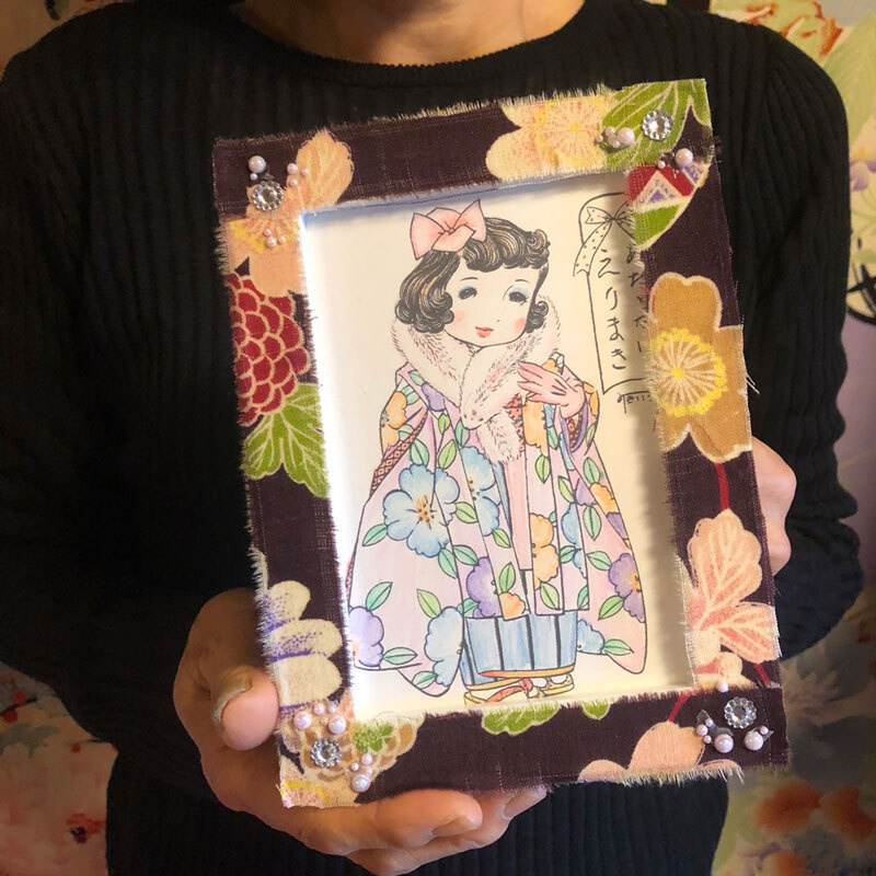 - レトロで可愛いぬり絵をしたあとあ、古布でハイカラな額縁を作りお持ち帰りいただけます。小学3年生以上(保護者同伴)