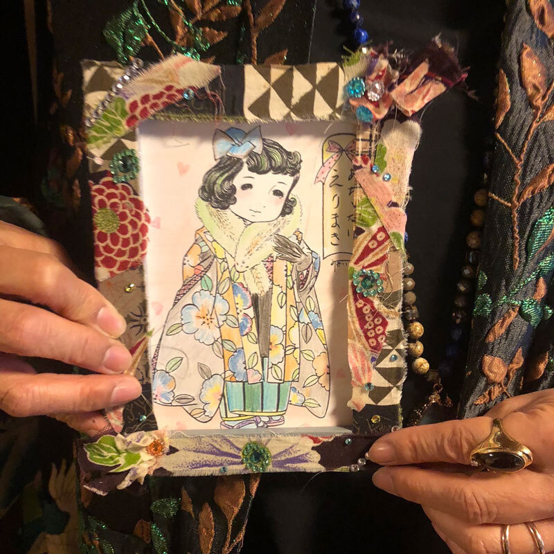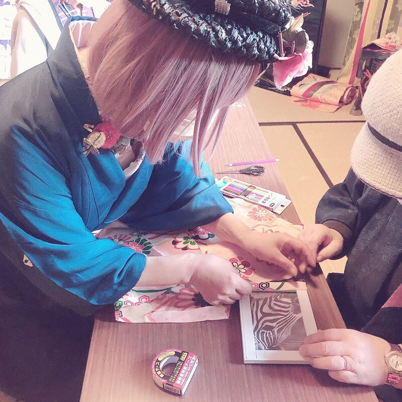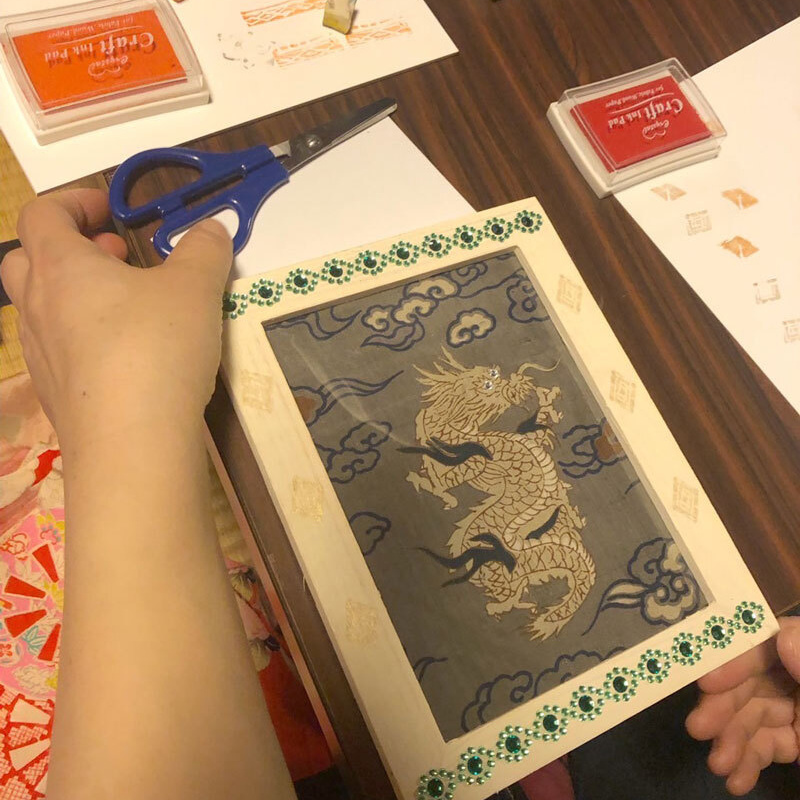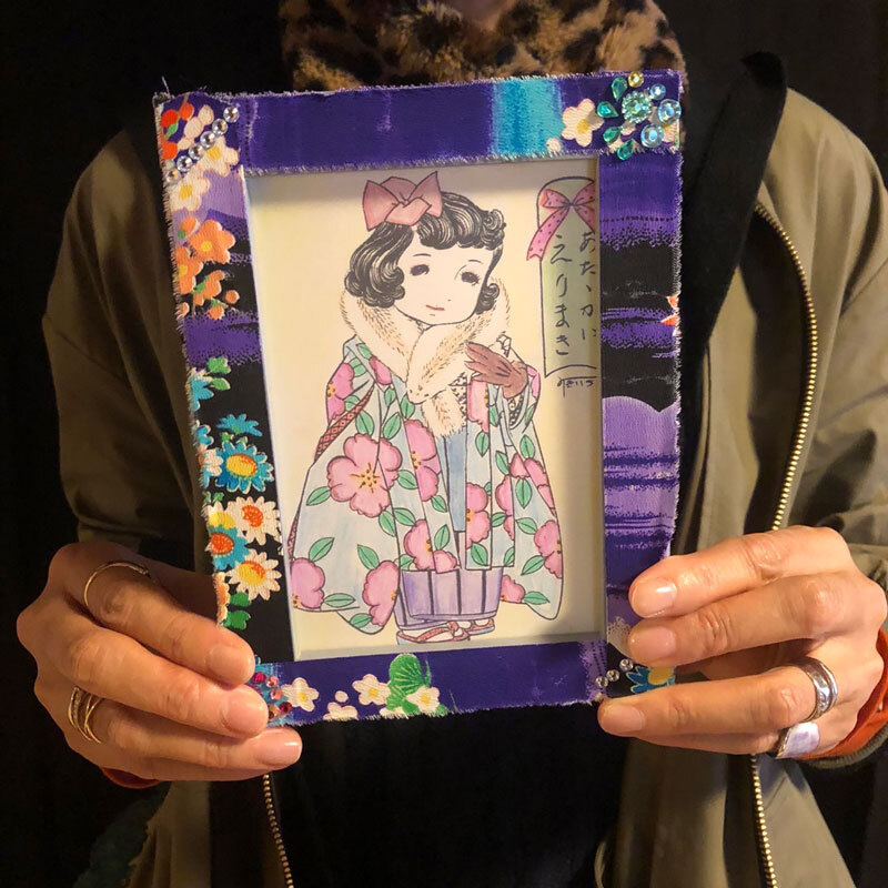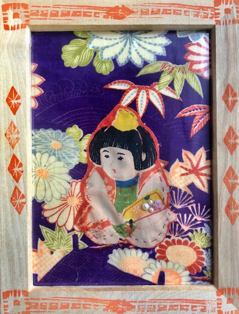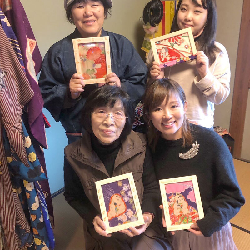 - レトロで可愛いぬり絵をしたあとあ、古布でハイカラな額縁を作りお持ち帰りいただけます。小学3年生以上(保護者同伴)